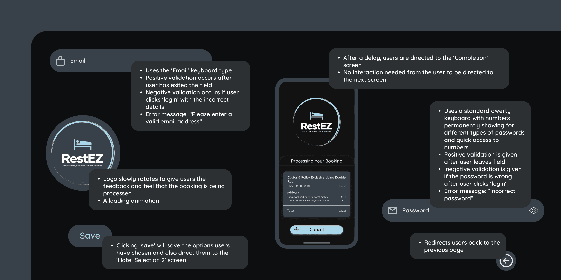 To ensure the designs could be accurately implemented, I created detailed developer annotations across the key screens. These notes documented interaction rules, navigation behaviour, states, and feedback patterns so the intended experience was clearly defined beyond the visuals.